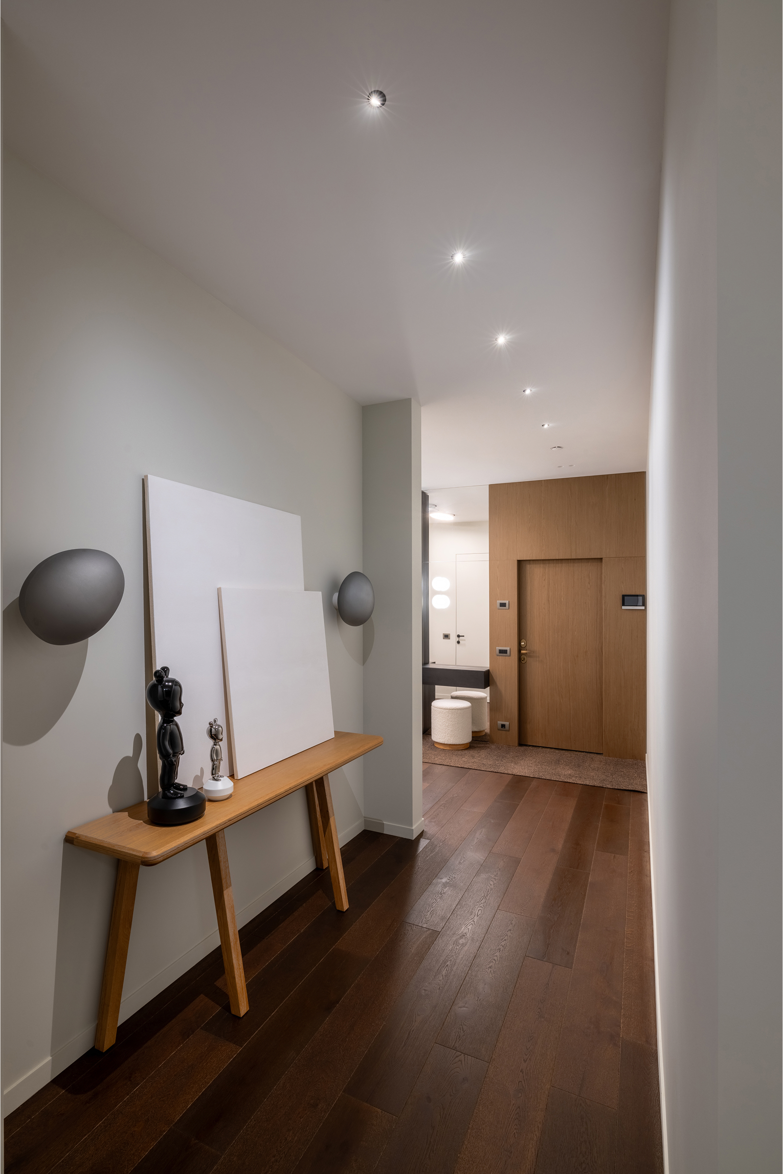 В историческом центре Перми, за строгим фасадом МФК «Москва», скрывается интерьер, который мастерски балансирует между архитектурной дисциплиной и домашним теплом. Это пространство не пытается оглушить роскошью, оно очаровывает нюансами: тактильностью дерева, глубиной цвета и тишиной, которая здесь кажется осязаемой.